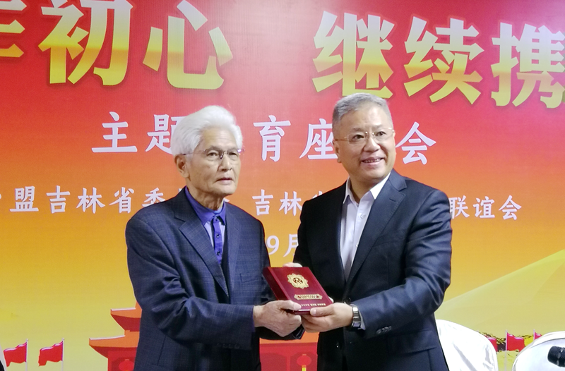 座谈会上台盟吉林省委报告了上半年的工作及“不忘合作初心,继续携手前进”主题教育活动情况及下一步打算;传达了参政党建设相关文件、台盟中央庆祝新中国成立70周年、人民政协成立70周年暨多党合作制度确立70周年座谈会精神;台盟吉林省委主委孔令智为吉林省人大原副主任、台盟吉林省委原主委、吉林省台湾同胞联谊会原会长袁柏雄颁发中共中央、国务院、中央军委授予的“庆祝中华人民共和国成立70周年”纪念章。