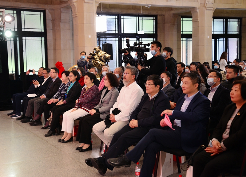 在沪台盟盟员、台胞代表与两岸嘉宾近百人见证展览开幕。(文图/台盟上海市委会)