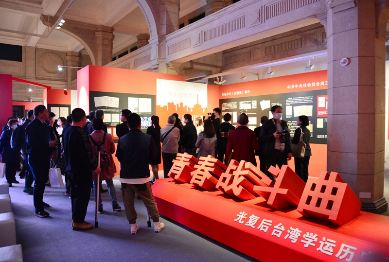 今年10月25日是台湾光复76周年纪念日,当天下午,“青春战斗曲”光复后台湾学运历史图文展在上海市历史博物馆开幕。展览由台盟上海市委会、上海市台联主办,台湾知名作家蓝博洲提供图文支持,全景展现了一代台湾青年为了社会进步、民族解放和祖国统一不懈奋斗的光荣历史,旨在帮助今日的两岸青年和各界人士更多地了解台湾近现代史,凝聚中华儿女携手推动两岸关系和平发展、同心实现祖国完全统一和中华民族伟大复兴。