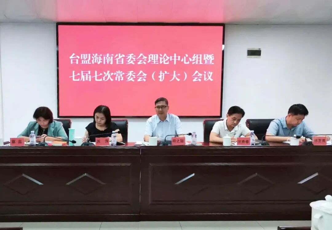 8月17日,台盟海南省委会在海口市召开理论学习中心组暨常委会(扩大)会议,深入学习贯彻中共二十届三中全会精神。台盟中央副主席、台盟海南省委会主委符之冠主持会议,台盟海南省委会副主委汪青春、苏萍、林艺青、蔡蕊出席,台盟海南省委会常委、省委会全体机关干部参加学习。