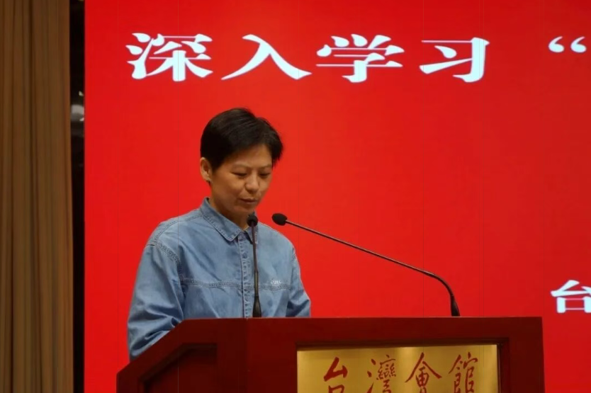 台盟北京市委会副主委、北京市台联副会长陈伟主持报告会。台盟北京市委会副主委杨旭、冼海珍,秘书长庄文静等出席报告会,北京市台联有关负责同志,台盟北京市委会、北京市台联机关干部以及盟员、台胞代表等60余人参加。