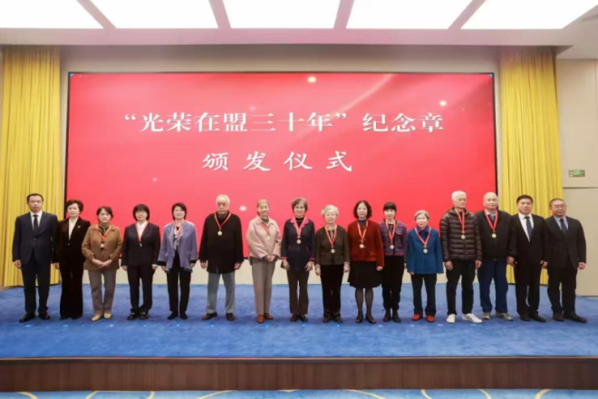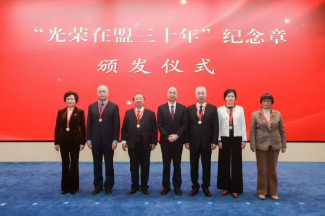 大会向光荣在盟30年以上盟员颁发纪念章。
