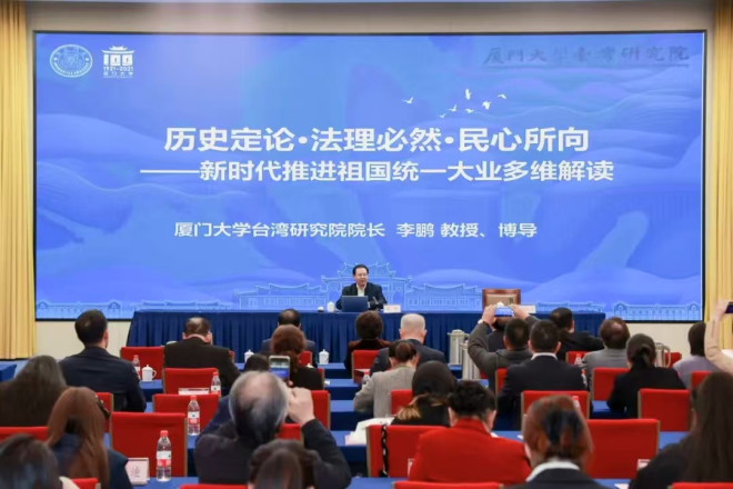 会议邀请厦门大学台湾研究院院长、博士生导师李鹏教授作《历史定论·法理必然·民心所向——新时代推进祖国统一大业多维解读》台情辅导报告。