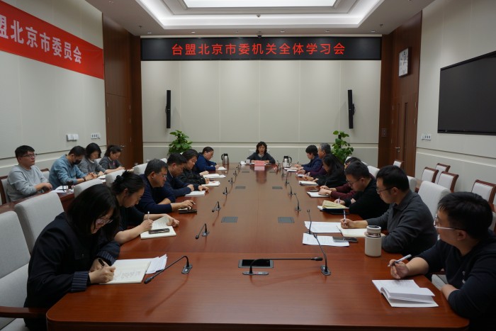 2月12日下午,台盟北京市委会召开全体学习会,传达学习习近平总书记视察北京重要讲话精神。台盟北京市委会主委陈子云、秘书长庄文静出席会议,台盟北京市委会机关全体干部、区级组织专职干部代表参加会议。陈子云主持会议。