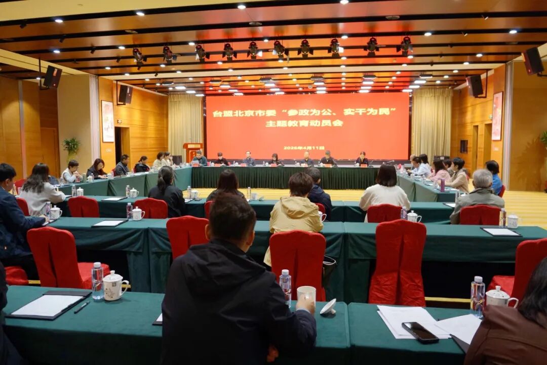 4月11日,台盟北京市委会召开“参政为公、实干为民”主题教育动员会。台盟北京市委会主委陈子云出席并讲话,副主委欧云崧、杨旭、陈伟,中共北京市委统战部党派处副处长胡晶出席会议。台盟北京市委会秘书长庄文静主持会议。