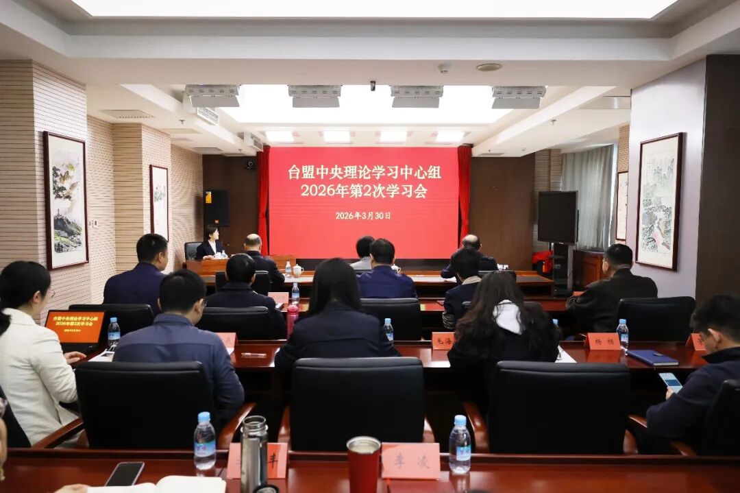 3月30日上午,台盟中央理论学习中心组召开2026年第2次学习会,专题学习“十五五”规划纲要。全国政协副主席、台盟中央主席苏辉,台盟中央副主席兼秘书长江利平等台盟中央理论学习中心组成员出席会议。台盟中央副主席郑建闽主持会议。