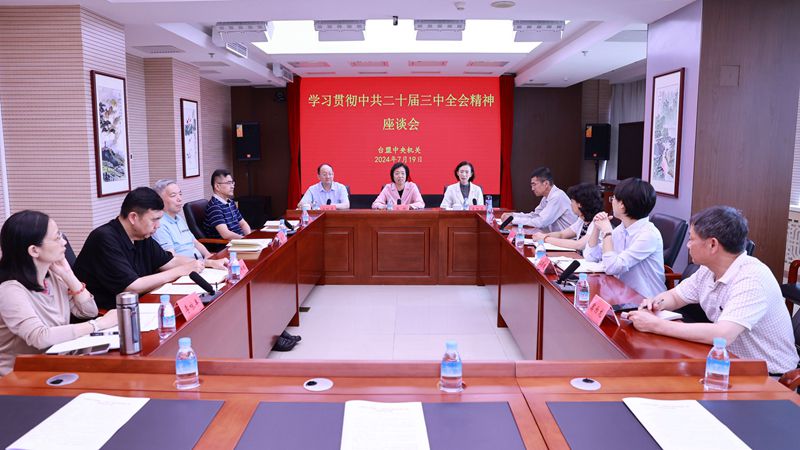 7月19日下午,台盟中央机关在京召开学习贯彻中共二十届三中全会精神座谈会。全国政协副主席、台盟中央主席苏辉主持会议并讲话。台盟中央副主席吴国华、台盟中央副主席兼秘书长江利平出席会议并发言。
