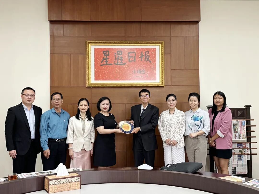 与星暹日报管理团队座谈交流后合影在与《星暹日报》座谈中,双方就中华优秀传统文化的海外传播、海外华文媒体发展方向、促进中泰两国文化交流等内容进行深入交流,并达成未来加强合作、共同弘扬中华优秀传统文化的共识。