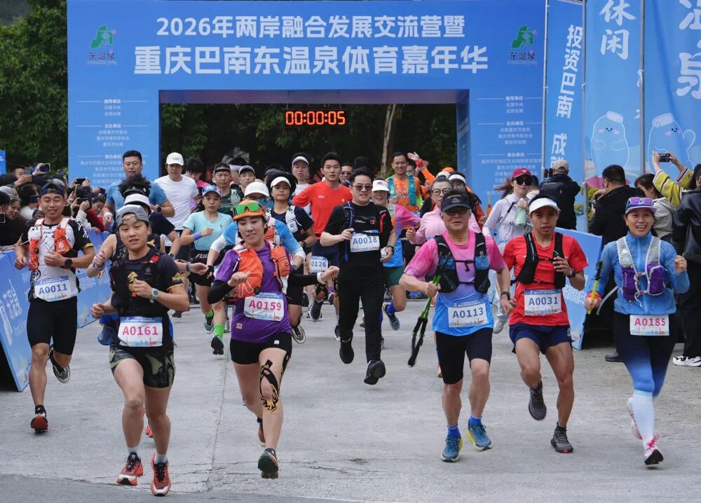 新华社客户端重庆3月22日电 22日,2026年两岸融合发展交流营暨重庆市巴南区东温泉体育嘉年华在巴南区东温泉镇举行。来自海峡两岸的700余名越野跑和徒步爱好者齐聚山水之间,以运动为纽带,共叙情谊、共促交流。