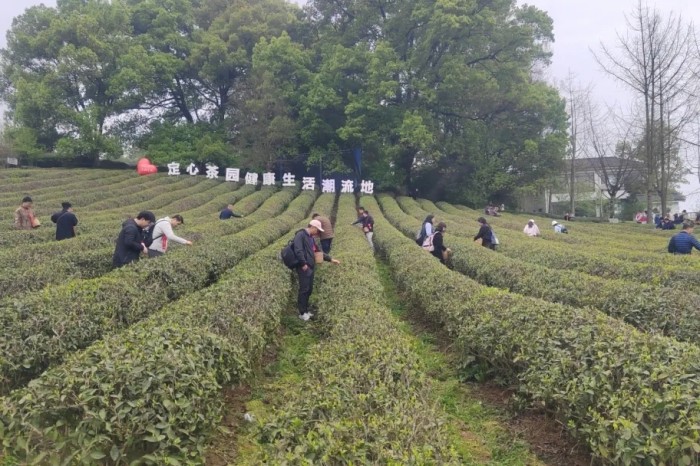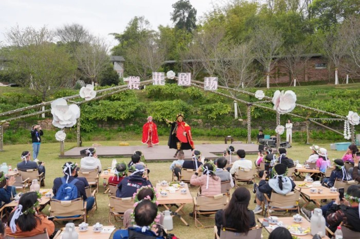 观看“春田花会·天乡之约”表演 在定心茶园体验采茶