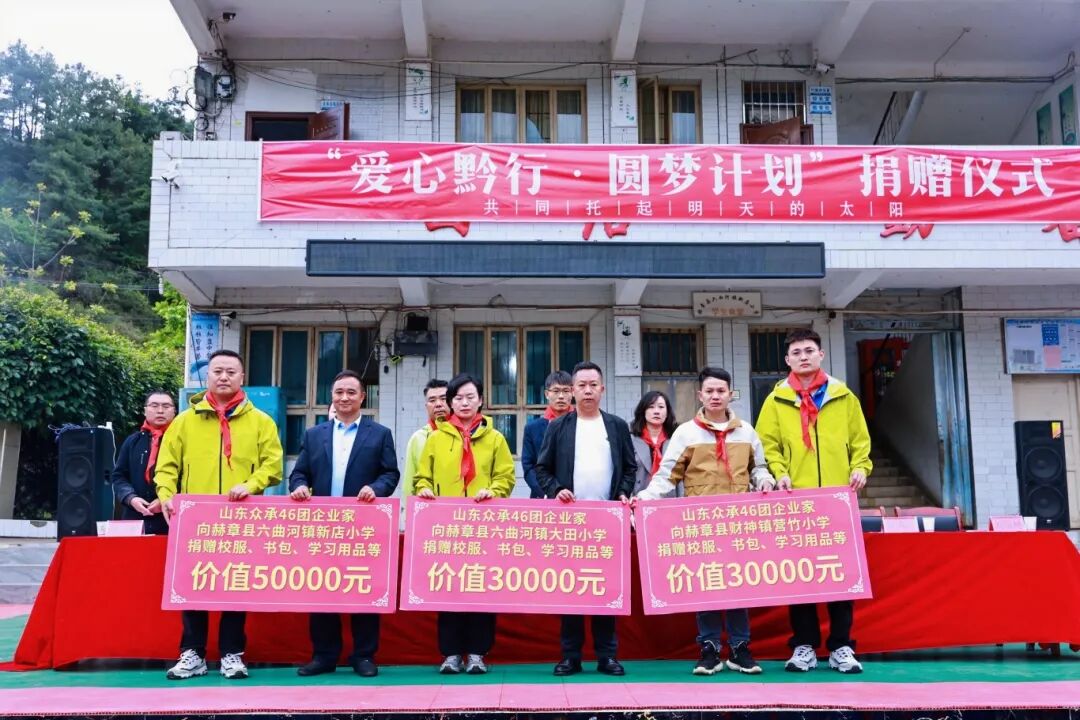 近期,经台盟中央社会服务部联引,山东相关企业家协会和爱心企业赴赫章县开展调研并举行帮扶捐赠。4月22日,山东兰夫众承公司、淄博渔洋企业家协会等爱心企业和社会组织在赫章县六曲河镇举行“爱心黔行·圆梦计划”公益行动捐赠仪式,为3所学校捐赠了价值11万元的校服、书包及各类教辅学习用品等助学物资,助力山区学校补齐办学物资短板。