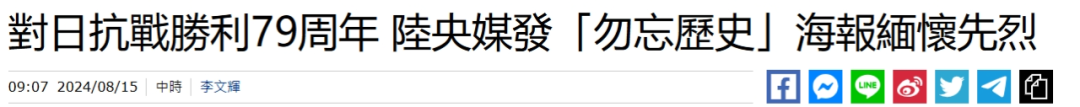 79年前的今天,1945年8月15日,日本宣布无条件投降,中国人民迎来了抗日战争的全面胜利。这也是近代以来中国抗击外敌入侵的第一次完全胜利。中华民族浴血奋战14年,无数先烈以血肉之躯筑起新的长城。这段血泪写就的峥嵘岁月,将永载史册,被两岸同胞共同铭记。日本帝国主义发动的侵略战争,给包括台湾同胞在内的海峡两岸中国人带来了深重灾难。这几天来,岛内各界举行了相关纪念活动。“这段历史绝对不能遗忘!”台湾时事评论员赖岳谦表示,日本杀戮台湾人的历史事实是有文献可参考的,几千万中国人的牺牲才迎来最终抗战胜利,把台湾从日本殖民统治下解救出来。他认为,岛内应该有更多电视剧或文学作品来描述日本人在二战期间所犯的这些可怕而极为严重的错误。8月14日是世界“慰安妇”纪念日,台湾地区前领导人马英九到台南市向“慰安妇”制度受害者纪念铜像献花时,痛批民进党当局媚日无底线,在岛内“2019课纲”中完全不提“慰安妇”,淡化台湾人抗争的史实,令人感到不可思议。 同一天,台湾妇女救援基金会(妇援会)在台北举行记者会,也呼吁各界重视相关历史,并在岛内中小学课纲和历史教材中增加相关历史内容,让更多年轻人了解历史真相。台湾《工商时报》、“中时新闻网”等岛内媒体,在8月15日转发总台等大陆媒体的相关文章及海报,纪念日本宣布无条件投降79周年,缅怀抗战先烈。台湾时事评论员王炳忠当天在社交媒体发文表示,很多人说,读了战争历史,所以希望和平。如果真是如此,那就更应还原台湾人堂堂正正中国人的本色,拒绝外力再来干预台湾问题,更不能让日本军国主义在美国庇护下回魂,祸乱台海。他呼吁,海峡两岸乃至海内外的中华儿女务必记取历史,“勿再分裂,勿再内耗,我们定要在这一代实现国家统一,绝不让国破山河碎的悲剧重演!”胜利来之不易,铭记历史,警钟长鸣,吾辈自强。(来源:看台海)
