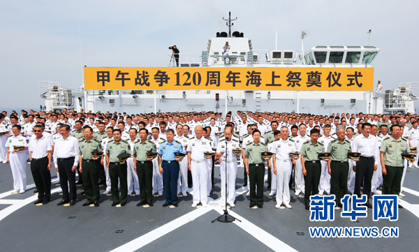 新华网山东威海8月27日电(记者王瑶、吴登峰)海军27日在山东威海刘公岛海域举行甲午战争120周年海上祭奠仪式。