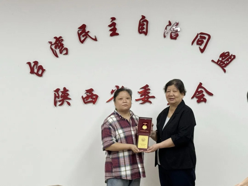 陈玉玲为参加过抗战的盟员、台胞遗属颁发“中国人民抗日战争胜利80周年纪念章”。