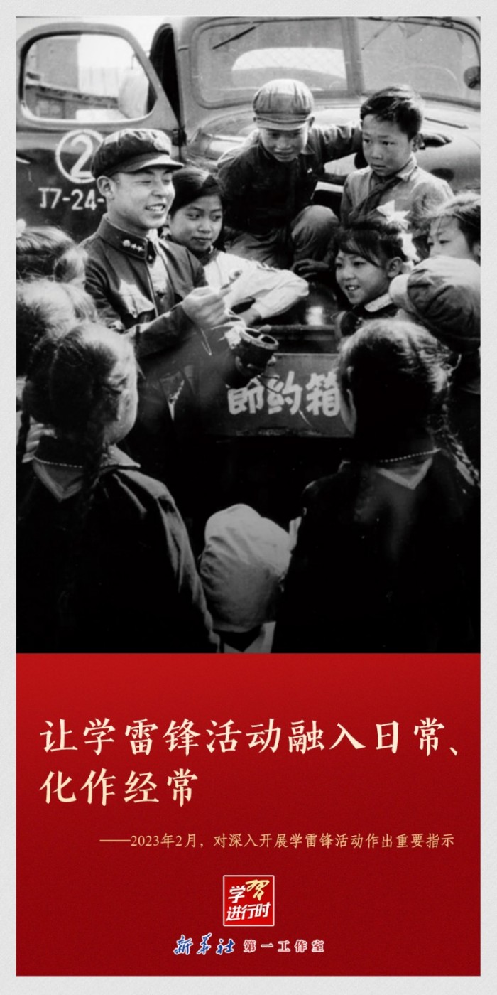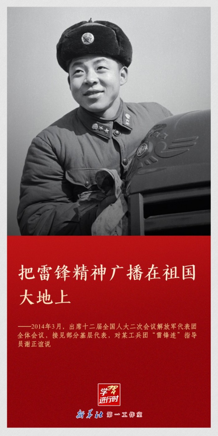 【学习进行时】“雷锋精神永不过时”“让学雷锋活动融入日常、化作经常”“雷锋精神,人人可学”……党的十八大以来,习近平总书记多次动情地谈到雷锋精神。在学雷锋纪念日到来之际,让我们一起重温习近平总书记关于雷锋精神的重要论述。